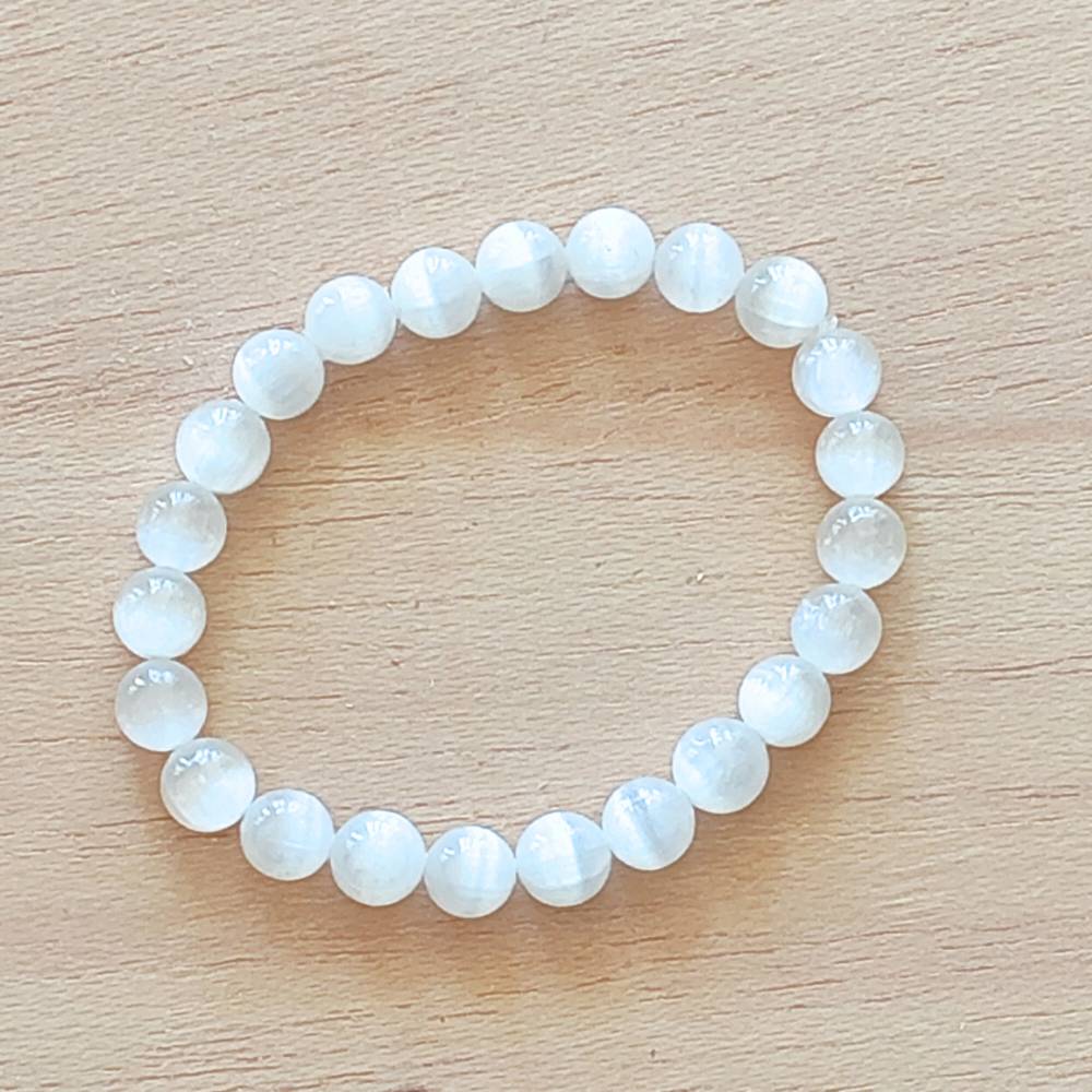 Pulseira de Selenita – Esferas 8 mm