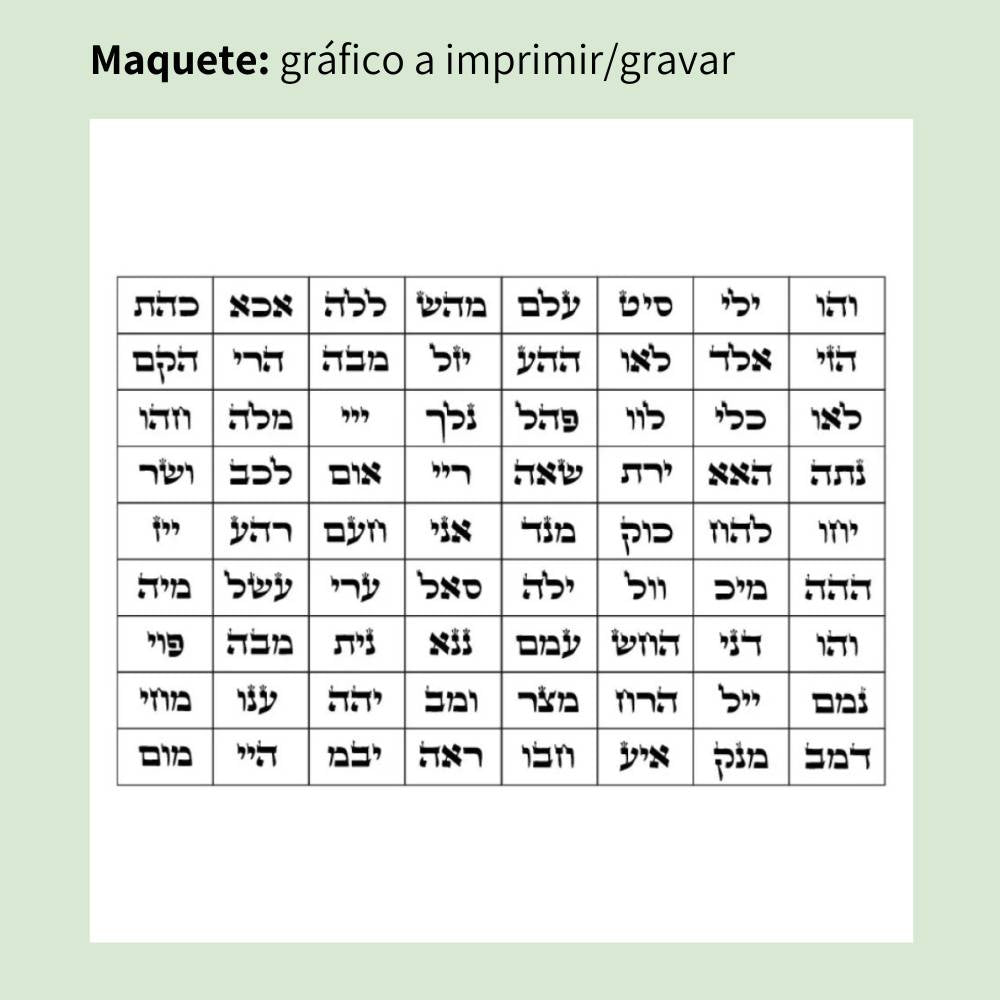 O 72 Nomes de Deus é um gráfico radiestésico de alta frequência espiritual, representando as 72 combinações sagradas de energia que se manifestam como vibrações de luz, proteção e harmonia. É considerado um canal de ligação com a consciência divina e um potente emissor vibracional para elevar a energia do ser e do ambiente.